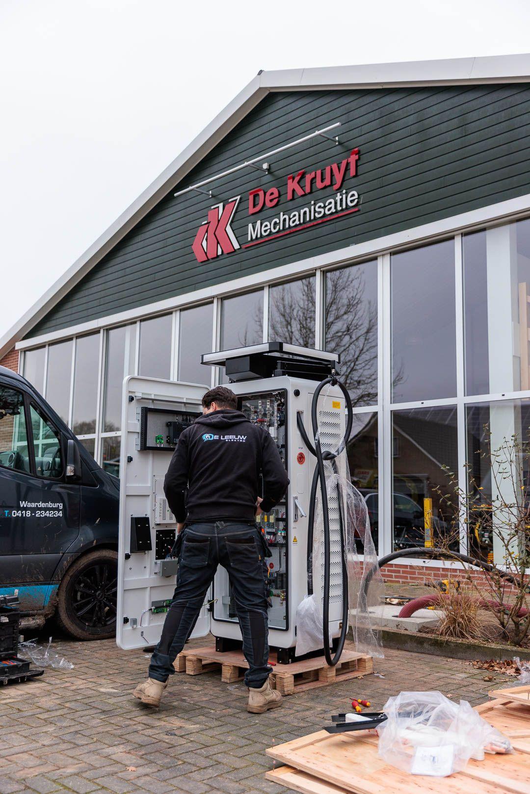 Voor Transportbedrijf Van Reenen hebben wij een snellader geïnstalleerd die, in samenhang met de accu's en zonnepanelen installatie, wordt ingezet voor het laden van de elektrische vrachtwagens.