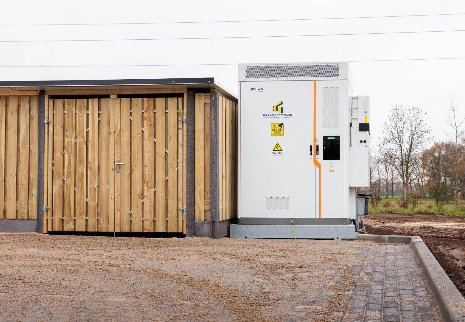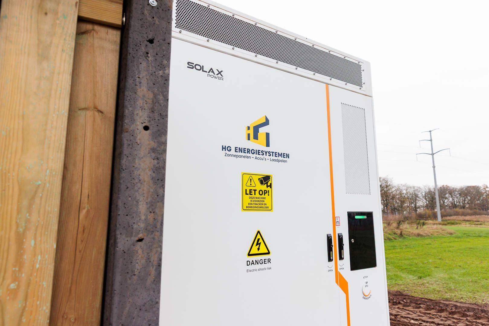 Voor restaurant Grand Plaza in Eibergen heeft HG Energiesystemen een SolaX accu geplaatst van 200 kWh, gewrapt in een groene kleur. Het restaurant gebruikt de meeste stroom aan de randen van de dag. De accu wordt gebruikt om de stroom overdag, wanneer de energieprijs laag is, in te kopen en op te slaan, om deze aan de randen van de dag te kunnen gebruiken, als de stroomprijs hoger ligt. Ook zonder zonnepanelen kan een energieopslagsysteem een grote kostenbesparing opleveren.
