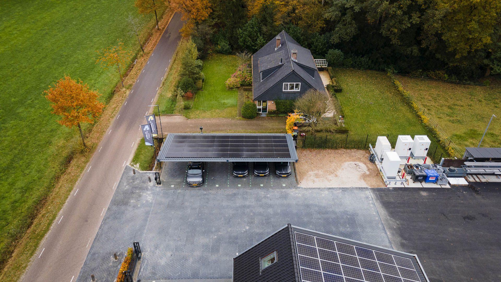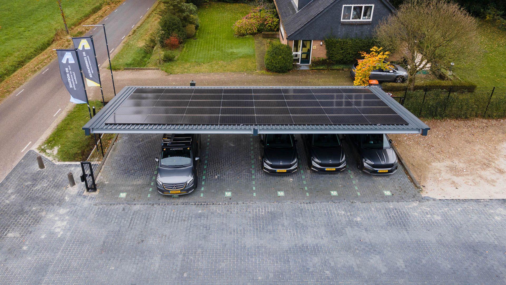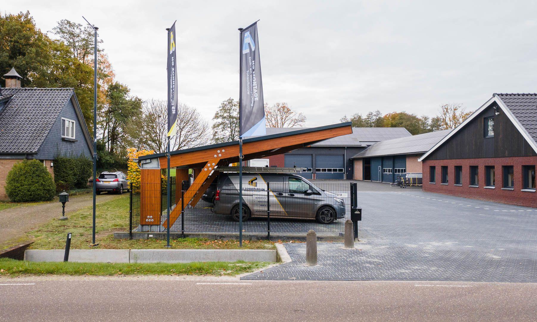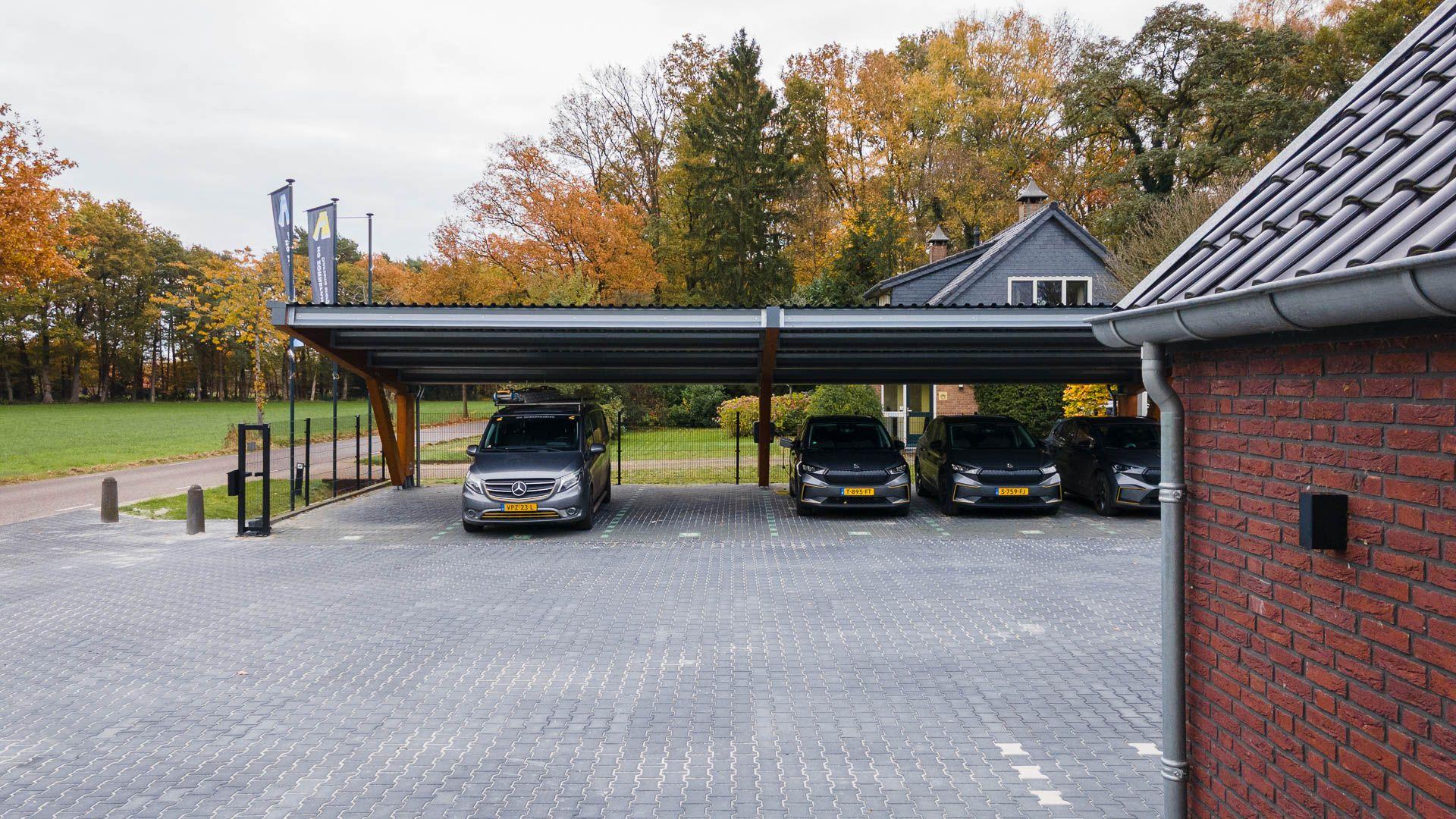 In Diepenheim hebben we deze Woodline Solarcarport geplaatst voor de opwekking van energie en het laden en onderbrengen van het wagenpark.