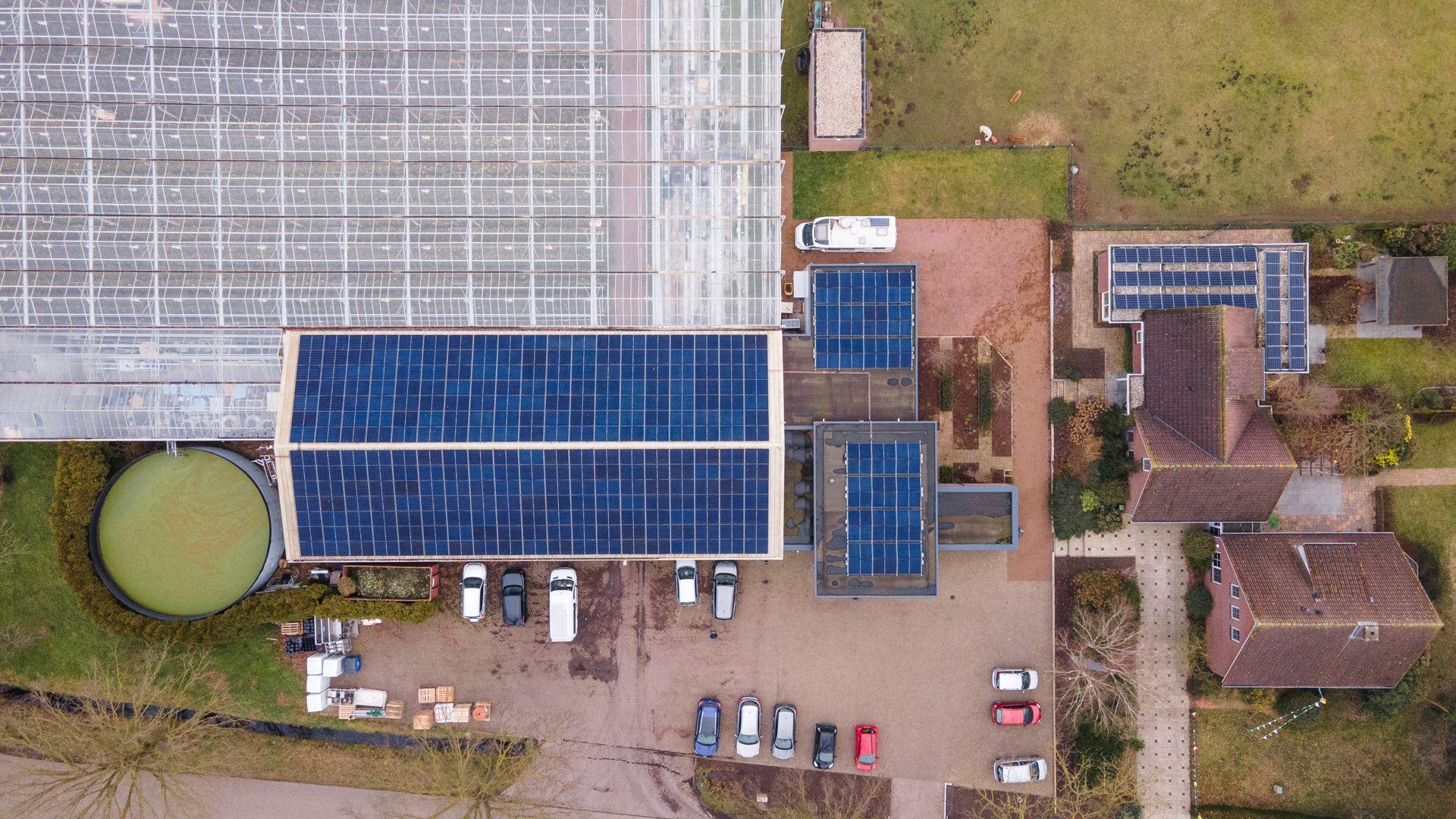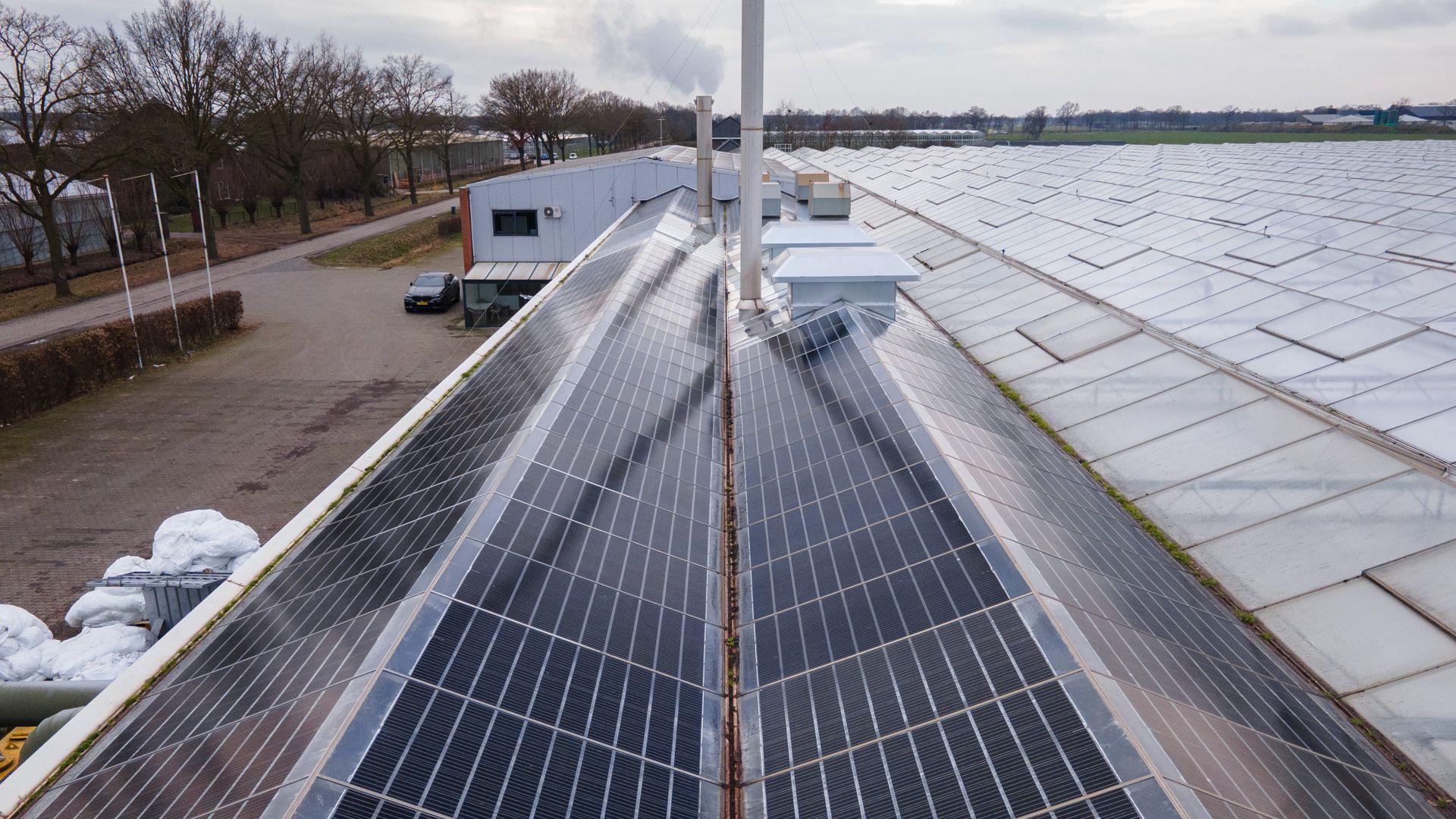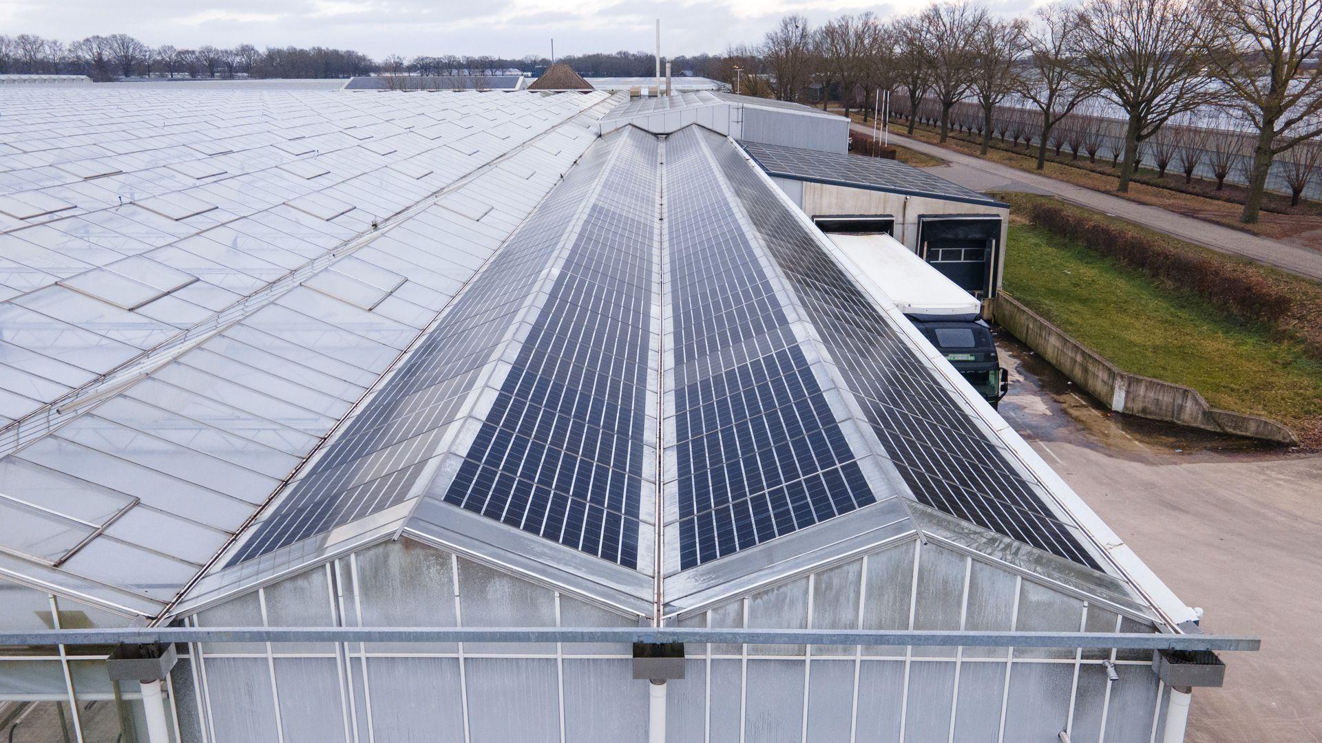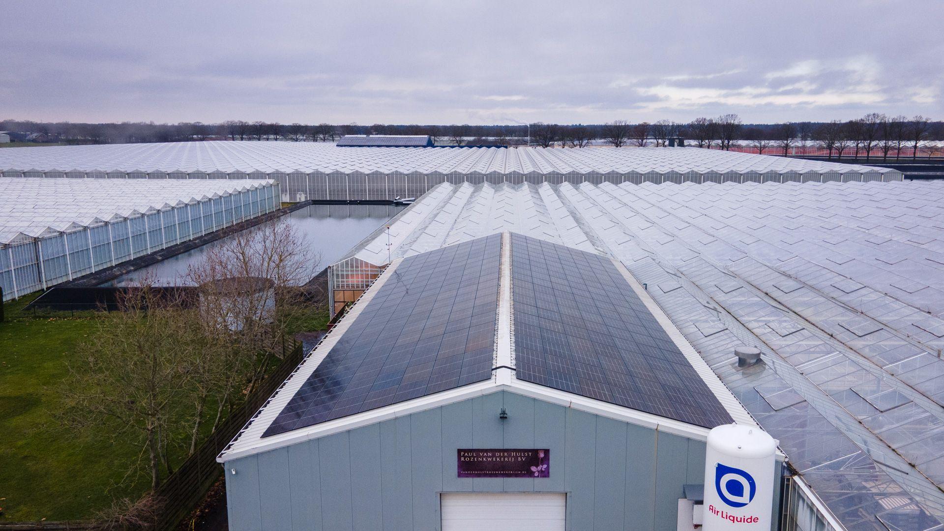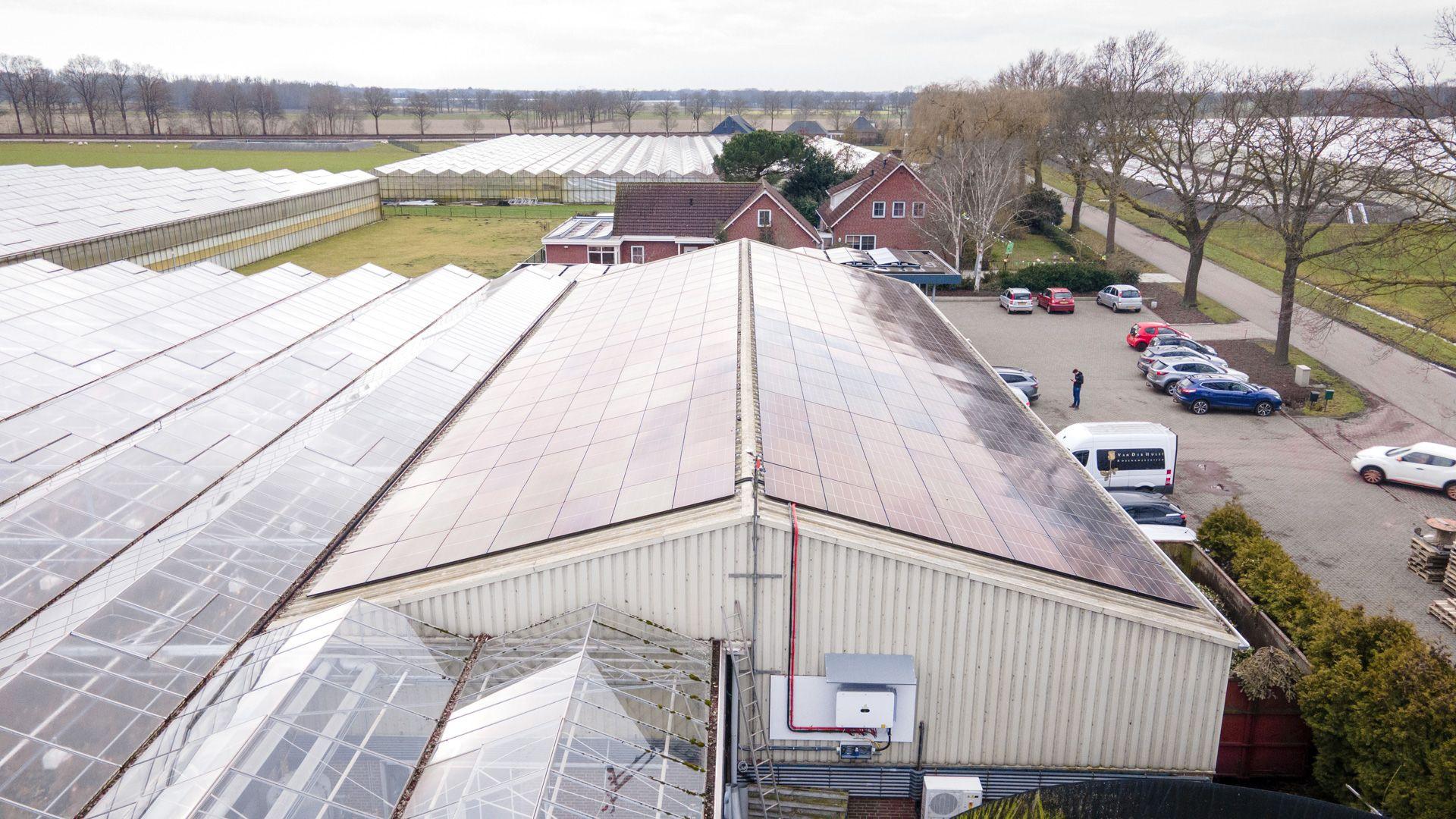 In Meterik hebben wij diverse daken van Van der Hulst Rozenkwekerij voorzien van zonnepanelen.